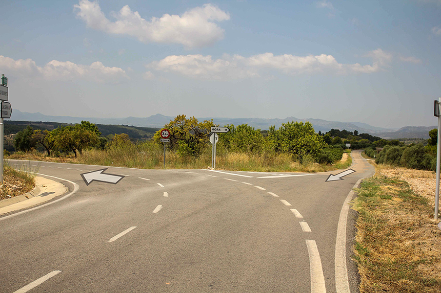 Zona molt ràpida que desemboca en una forqueta tancada abans de l'entrada a la població d’Els Guiamets, en direcció a La Serra d’Almos. La carretera amb l'asfalt vell i trencat canvia per tornar-se més llis i la carretera més ampla.