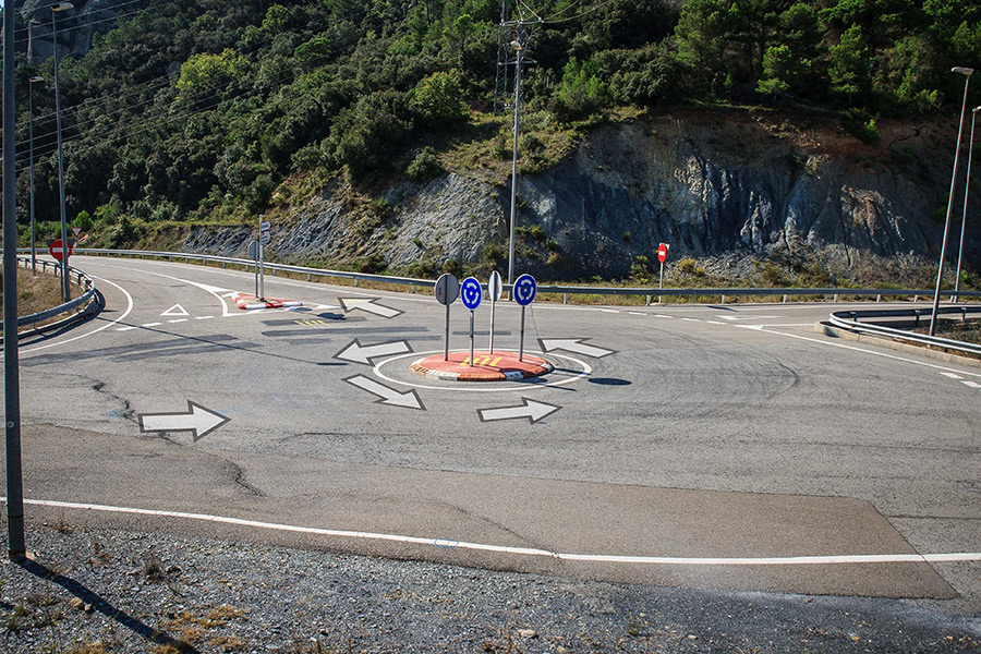 Se trata de una de las zonas más reconocidas de la prueba, la rotonda con gradería natural que permite una excelente visión del paso de los participantes. Se viene muy rápido de la antigua N-420 y se tendrá que dar toda una vuelta a la rotonda. Zona muy segura en la vertiente de la montaña.